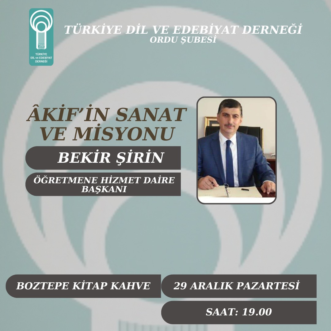 Türkiye Dil ve Edebiyat Derneği (TDED) Ordu Şubesi tarafından Mehmet Âkif Haftası dolayısıyla “Âkif’in Sanatı ve Misyonu” konulu sohbet programı düzenlendi.